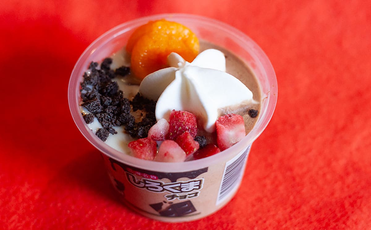 この商品は、チョコソース入りのチョコ氷をベースに、バニラフロートやみかん、いちご、焼きチョコをトッピングした贅沢な一品。濃厚なチョコと爽やかなフルーツの調和、「しろくま」ならではの満足感を楽しめるのだとか。
