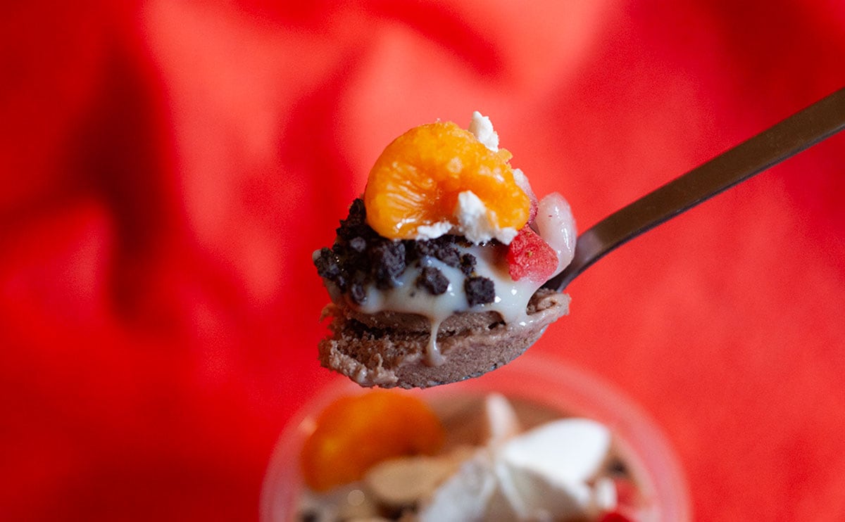 チョコ氷はシャリシャリで、ミルキーな味わい。氷だからか、チョコの風味はしっかり感じるのに、甘みは控えめです。が、チョコソースが濃厚で、よいアクセントになっていますね。このバランス、絶妙かも!