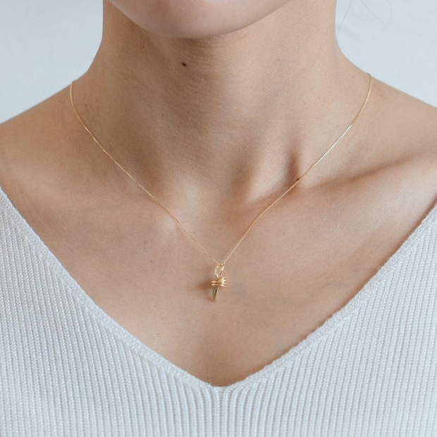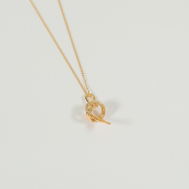 結び目モチーフが主役のネックレス。小ぶりなサイズかつ素朴なモチーフでありながら、立体的で、見る人を惹きつけるさりげない存在感が魅力です。