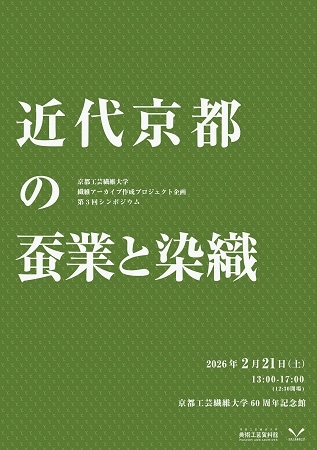 関連企画として、京都工芸繊維大学繊維アーカイブ作成プロジェクト企画 第3回シンポジウム「京都工芸繊維大学―近代京都の蚕業と染織―」が、2月21日(土)の13:00~17:00に、京都工芸繊維大学60周年記念館にて開催される。シンポジウムは申込不要で入場料無料、終了後は18:00まで展覧会を見ることができる。