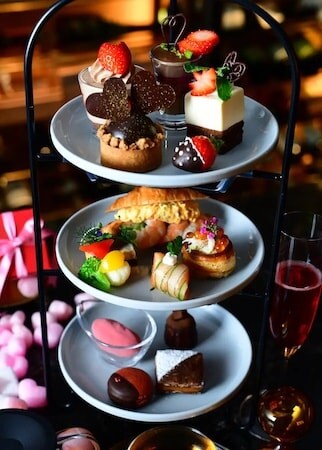 大阪府大阪市北区にある「ライズホテル大阪北新地」1階の「Cafe&Bar KARIN×un treize(カリン・アントレーズ)」では、バレンタインをイメージしたアフタヌーンティー「Chocolate×Strawberry」を3月1日(日)まで提供する。