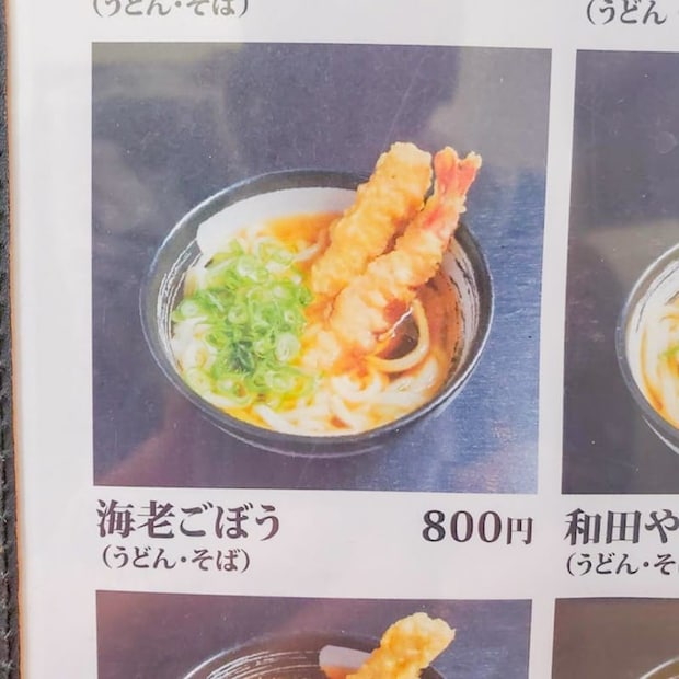 そんな和田やの看板メニューは、器からはみ出すほどの存在感を放つ「極太ごぼう天」を冠したうどんとそば。