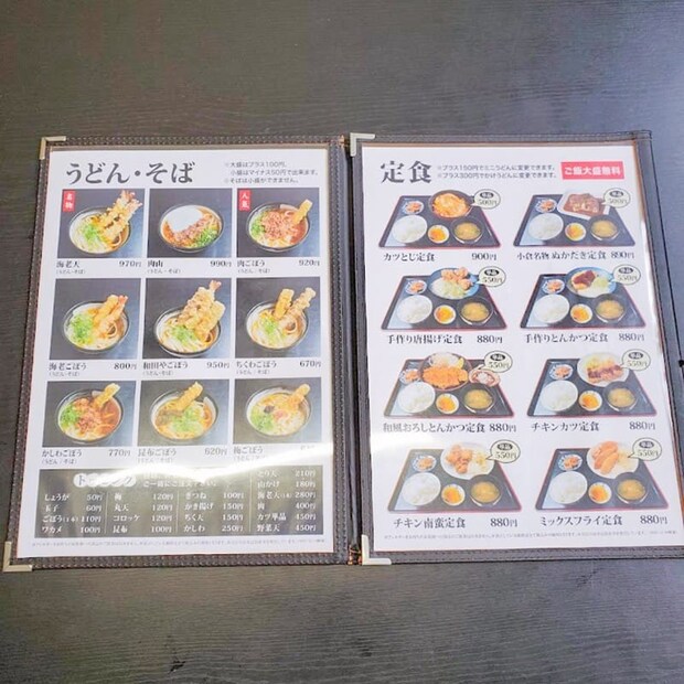 また、「手作り唐揚げ定食」や「チキン南蛮定食」など、素材を活かした手作りの味が自慢の定食メニューや丼物まで取り揃えています。
