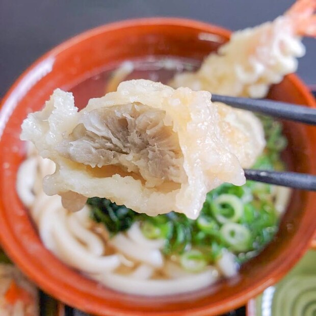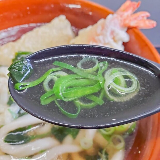 だしの芳醇な香りと優しく甘めの味わいが特徴のつゆも、どちらかというと主張の強い天ぷらたちとうどん麺を取り持つ、抜群の「まとめ役・引き立て役」になっています。