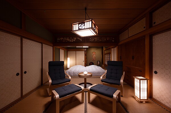 客室には組子や雪見障子、信楽焼の浴槽など日本の伝統意匠を随所に採用し、和の素材が持つ質感と温もりを感じられる空間を設計。海外からの旅行者を含む多様な宿泊者が快適に滞在できるよう、寒さ対策に力を入れた設備を導入し、“和の情緒と現代の快適さ”が調和する環境で上質な時間を提供する。