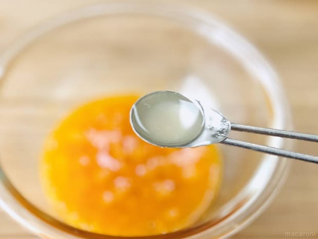 普段通りに卵液を作ったら、ツナ缶の油を加えてあとは焼くだけ。ツナ缶の油の分量は、卵2個に対して小さじ1杯を目安にしてみてください。