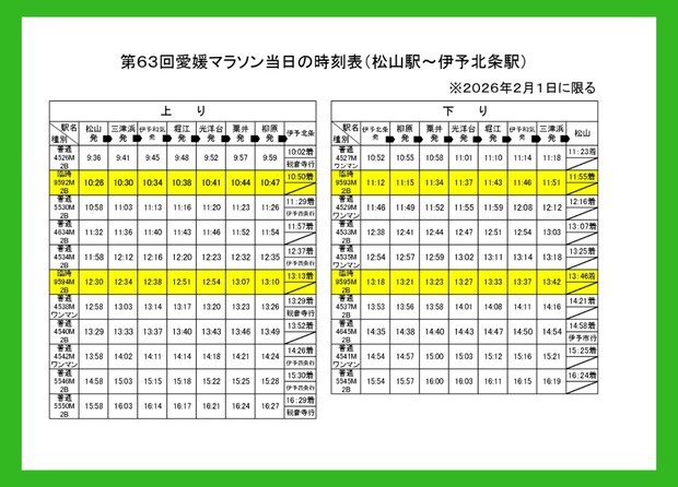 ※[引用]JR四国 臨時列車のご案内(愛媛マラソン公式サイトより)