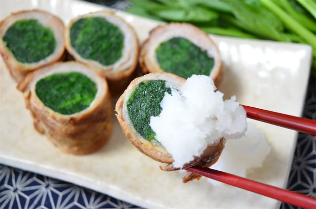 ほうれん草みっちり♡「飛騨ほうれんそうの豚肉巻き」