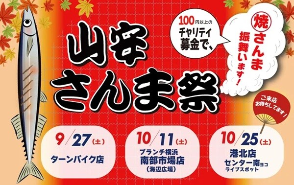 「山安さんま祭り」の第1弾は終了。10⽉11⽇(⼟)の第2弾は、「山安横浜南部市場店」で2,000尾、さらに10⽉25⽇(⼟)の第3弾は、「山安港北店」で2,000尾を提供する。