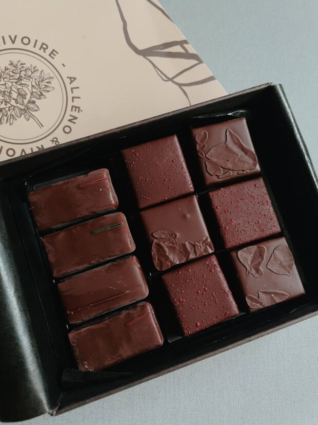 甘いものはちょっと苦手……という方や、健康志向の方にぜひおすすめしたいのが、「ALLÉNO & RIVOIRE(アレノ&リヴォワール)」。2021年に誕生した新星ながら、すでに世界中にファンを持つ話題のショコラティエです。その人気の理由は、砂糖の代わりに低GIの白樺樹皮由来キシリトールを使用していること。甘さを抑えながらも、素材の持つ風味を見事に引き立てているのが特徴です。さらに、低温抽出・発酵・冷却濃縮といった革新的な技術を駆使して、驚くほど繊細で奥深い味わいを実現しています。