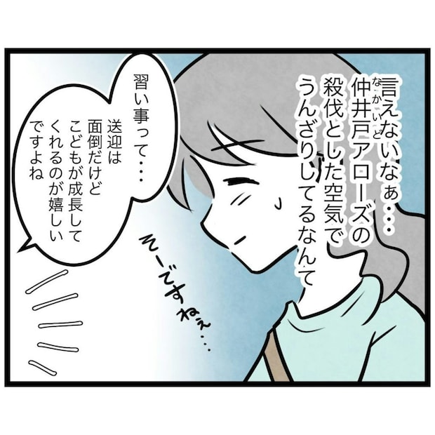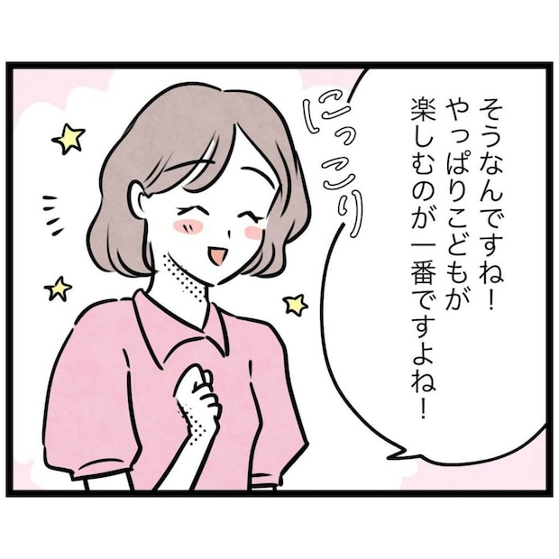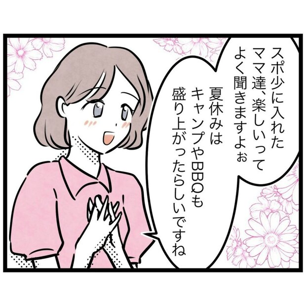 笑顔で習い事の良さを語る同級生ママに、もっつんさんは「スポ少野球がストレスになっている」とは言えず、笑顔でやり過ごします。