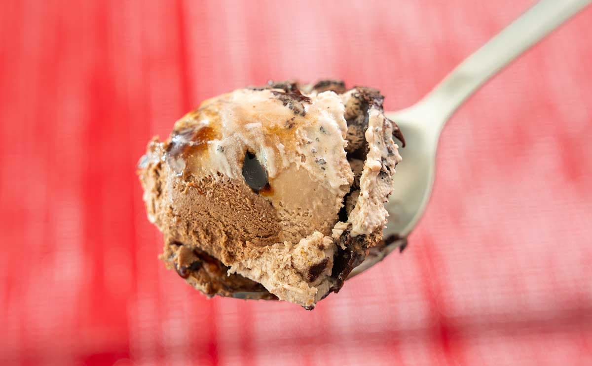 食感が楽しいほろ苦いクッキーと濃厚なチョコレート、コクがあるチョコアイス、深みのあるビターチョコアイスに、ブランデーが香るチョコソースがベストマッチ! いろんなチョコの風味が何層にも重なり合い、本当に複雑で奥深い味わいを楽しむことができますね。久しぶりに食べましたが、やっぱりこのアイスはおいしいです。