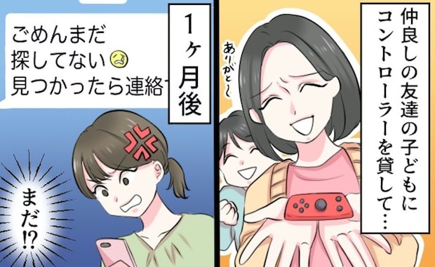 ゲーム機のコントローラーを友だちの子どもに貸したところ、1か月たっても返却されないことにモヤモヤしているRさん。