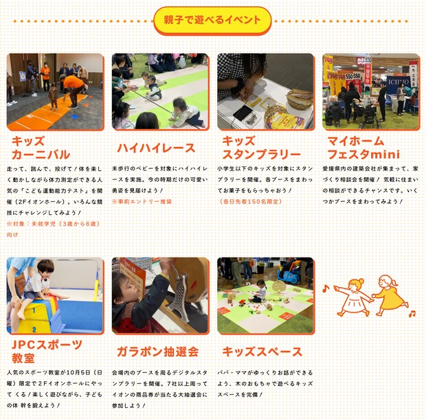 さらに!楽しく体を動かしながら体力測定ができる、人気の「キッズカーニバル」や、JPCスポーツ教室の体験(10/5(日)限定)などもできちゃいます!