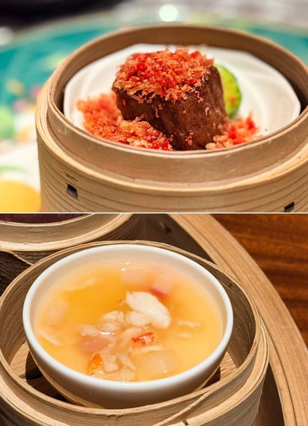 「タラバ蟹のせ 上湯餡かけ茶碗蒸し」は、タラバ蟹がたっぷり入った贅沢なひと品。なめらかな餡は塩気がちょうどよく、蟹の旨みをやさしく包み込む上品な味わいで、ほっとするおいしさでした。
