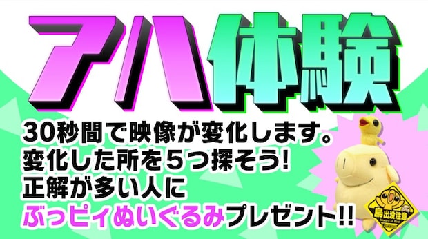 映像のどこかがジワジワと変わっていく場所を発見するアハ体験。日本海テレビの番組にちなんだオリジナル問題を出題します!