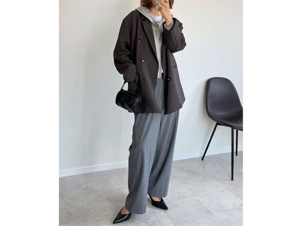今よりも肌寒くなってきたら、ジャケットをプラスしたコーディネートがおすすめ。きれいめコーディネートの中にカジュアルなジップアップパーカーをあわせることで抜け感をプラスすることができます。秋から冬はもちろん春先まで着まわせるアイテムなので、持っておいて損はなし!