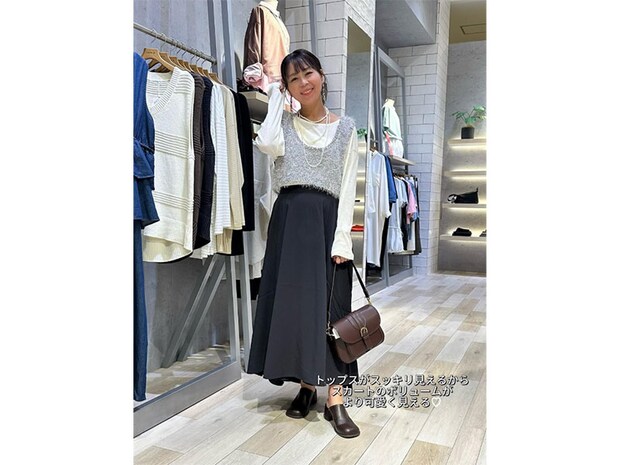 シャギーベストも2025年秋のおすすめアイテム。シンプルなコーディネートにシャギーベストをあわせれば、今年っぽいスタイルが完成します。ボリュームのあるボトムスにあわせるなら、ショート丈のコンパクトなベストをあわせて。メリハリのあるコーディネートが今年は人気!