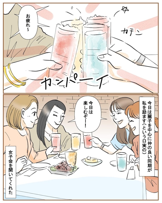 今日は仲の良い同期4人で女子会です。麗子を中心に、私を励ます(という口実で)みんなが集まってくれたのです。