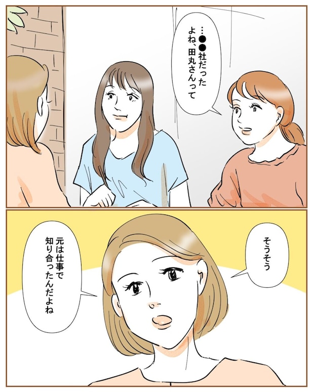しばらくして、一人が「そういえば、●●社だったよね、田丸さんって」と聞いてきたので、「そうそう。元は仕事で知り合ったんだよね」とすでに懐かしいとすら感じながら和也のことを話す私。