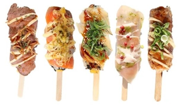「くるくる寿司バー」各500円は、ローストビーフやサーモン、生ハムなどを巻いたワンハンド巻寿司。販売は2月1日(日)のみ。