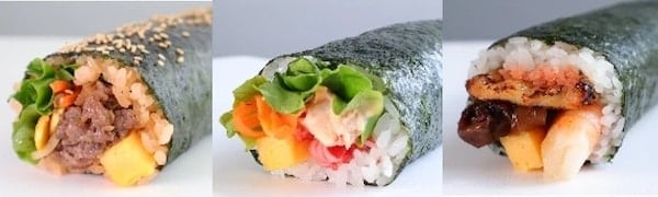 左:サラダ巻、右:キンパ巻