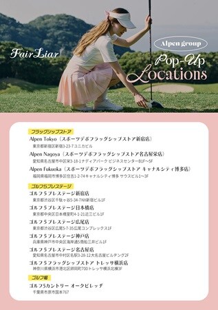POPUP STOREを開催するフラッグシップストアは、「Alpen Tokyo(スポーツデポフラッグシップストア新宿店)」「Alpen Nagoya(スポーツデポフラッグシップストア名古屋栄店)」「Alpen Fukuoka(スポーツデポフラッグシップストア キャナルシティ博多店)」の3店舗。