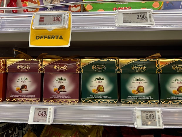 日本で流行っているドバイチョコ(ピスタチオチョコレート)が、イタリアでもシェアを広げつつあります。