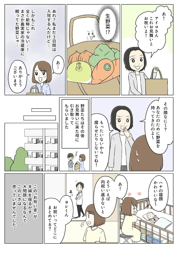 産後、病院へお見舞いに来た義母と義理の妹。手土産はまさかの野菜…