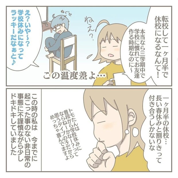 コロナによりマスク生活が始まりました。それにより、学校も休校。せっかく転校してまもなくなのに、友だちを作ることができなくなってしまいました。