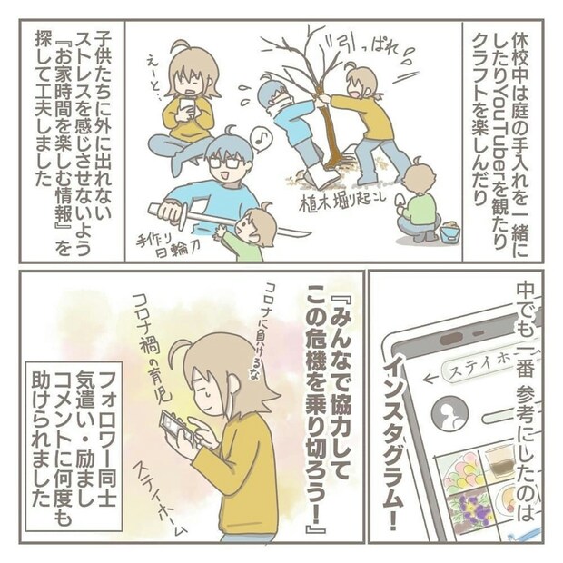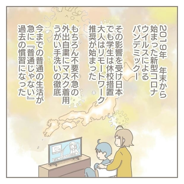 この作品は作者であるヨカさんとその家族に起きた、コロナ禍前後のエピソードです。コロナ禍の時期、第2子の出産を経て引っ越しをするところだったというヨカさん一家。夫は転職の後にオンラインセミナーに夢中になり、家族との時間が減ってしまいます。また、長男は学校で友だち付き合いがうまくできずにいました。