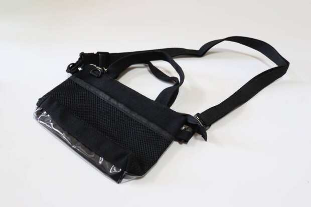 見た目はシンプルなサコッシュで、サイズ感も控えめ。横幅はスマホより二回りほど大きく、必要最低限の荷物を入れるのにちょうどよさそうです。