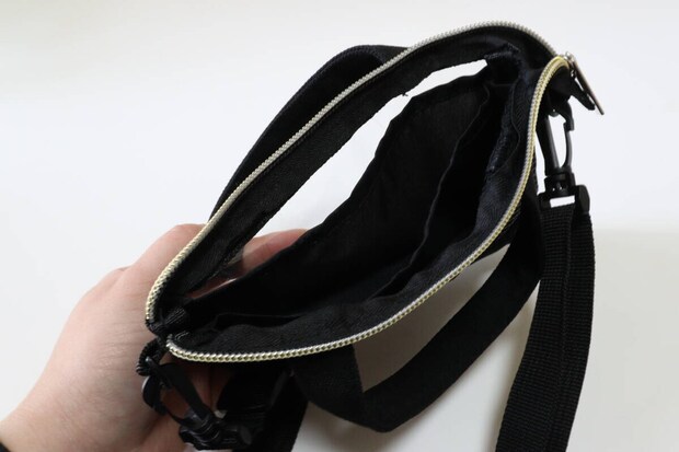 中には仕切りが2つ付いていて、荷物を分けて入れられる作りになっています。