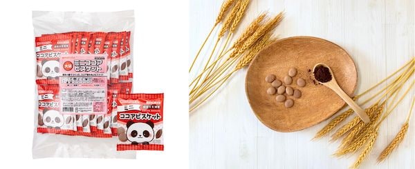 「大袋ミニココアビスケット」1,188円(税込)は、11gの個包装が20袋入った大容量パックで、保育園や幼稚園など業務用にも対応できる。個包装なので衛生的で、イベントやおやつタイムにも使える。
