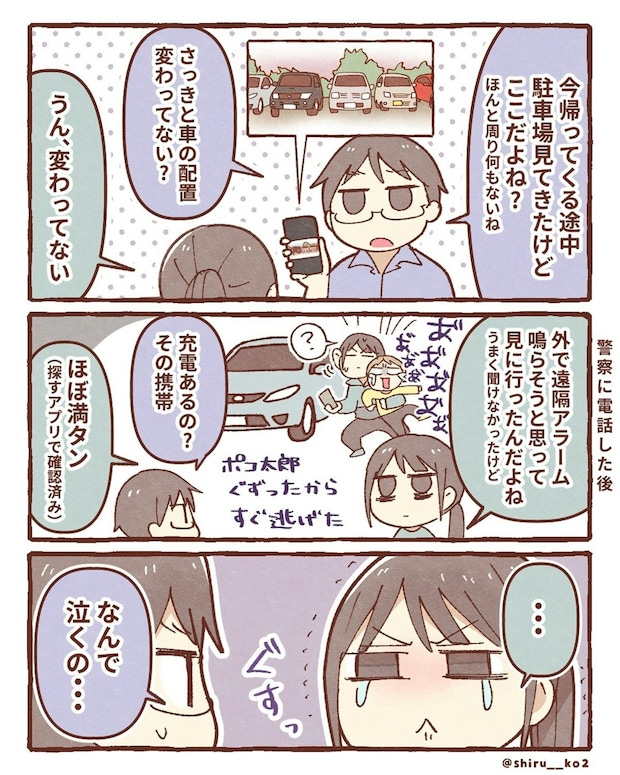2台目のスマホを契約し、警察に電話をした、しる子さん。特に、なにかしてくれるわけではなく、「もう少し待ってください」と言われるのみ。夕方、帰宅した夫に事情を話します。
