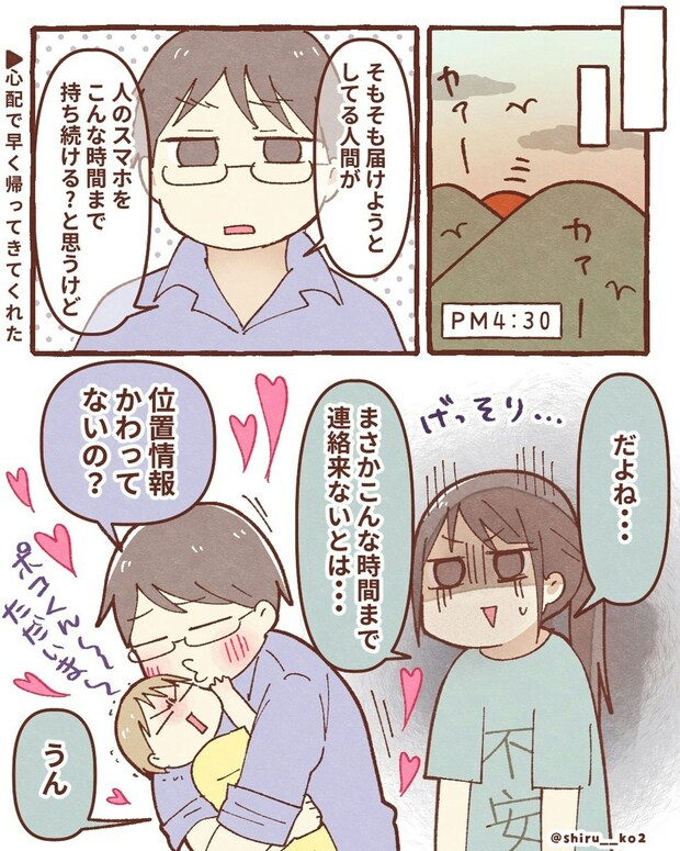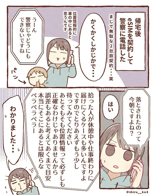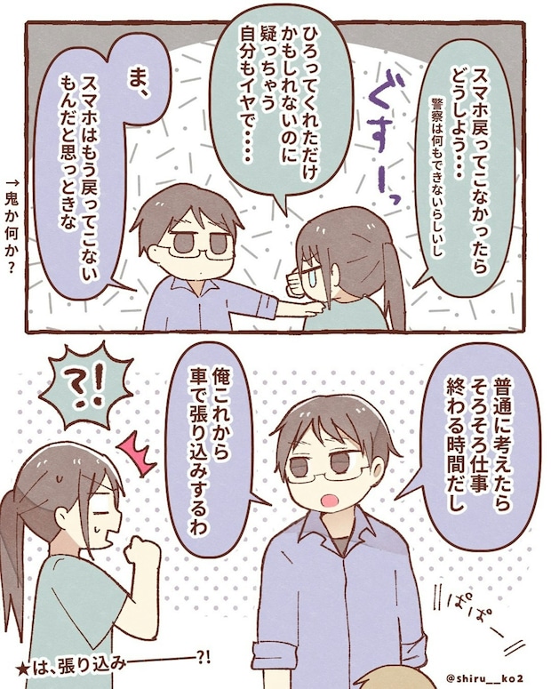 「スマホを拾ってくれた人は、仕事中」と推理した、しる子さん。一度、家に帰宅して、2台目のスマホを契約し、警察に電話をします。「連絡があるかもしれないから、もう少し待ってください」と諭されます。そして、夕方になり、帰宅した夫に泣きながら話をすると…。