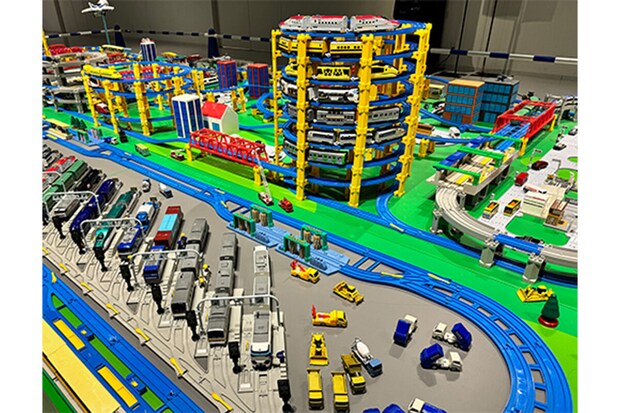 会場には、迫力満点の「トミカ・プラレール巨大ジオラマ」が登場。