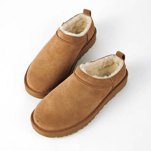 「流行りものも大好き! 今アツいアグのスリッポン手に入れました。車移動の日はこれが暖かくて楽で手放せないです。北国生まれですが、寒さに強いわけではありません(笑)」。アグのムートンスリッポン/本人私物