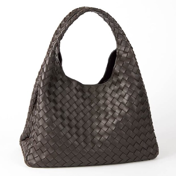 「スタイリストの百々千晴さんが持っていて可愛い~と思っていたのですが、持ってみたら私は大きいほうがバランスよく見えてこちらに!」。ボッテガ・ヴェネタのバッグ/本人私物
