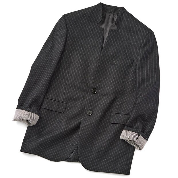 「ジャケットは袖をこんな感じでまくって着るのが好き。着たときのシルエットの美しさはもちろん、襟の形がユニークでお気に入りの1着です」。セリーヌのジャケット/本人私物