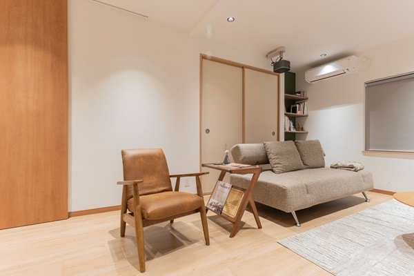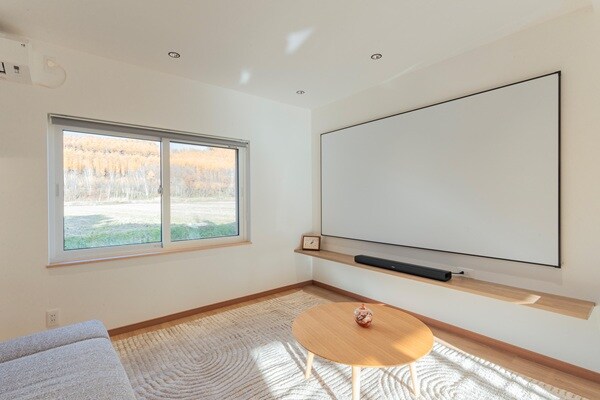 100インチのプロジェクターを備えたリビングで映画を鑑賞することも。