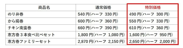 こちらの「恵方巻シリーズ」は、早めにご予約いただくと大変お得になります!