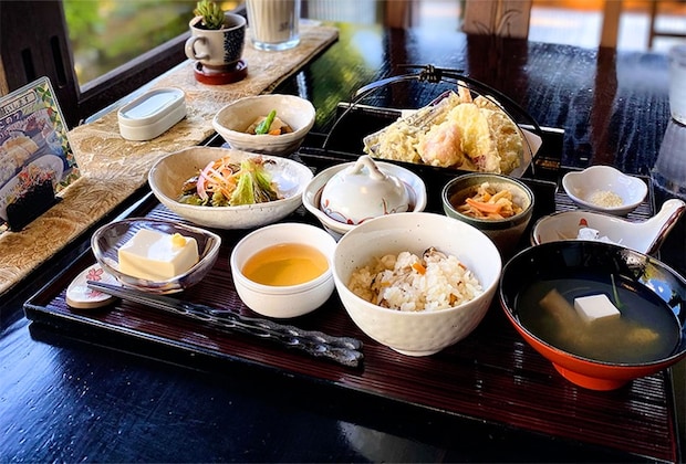 【飯塚】楠がシンボルの古民家カフェ。楠カフェの秋野菜ときのこの天ぷらランチ