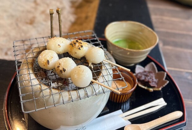 和モダンの素敵な空間では、七輪で焼いたふわっふわで絶品のお団子がいただけます。
