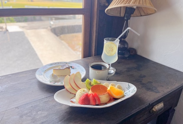 こちらの古民家カフェでは、日替わりのモーニングプレートとランチプレート、自家製スイーツなどが味わえます。