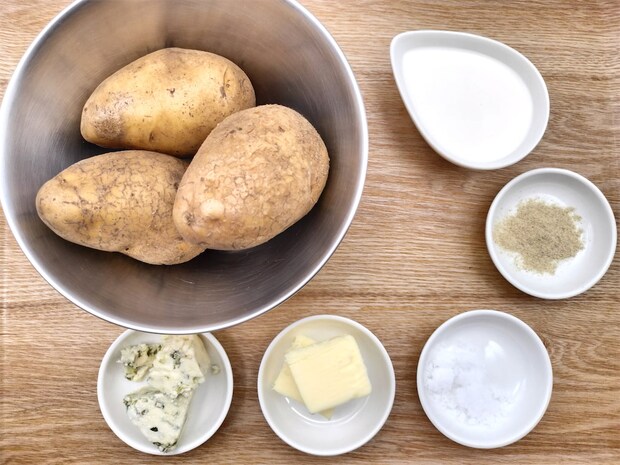 じゃがいもの素朴なおいしさと、ブルーチーズの塩気とコクが重なり合う、ワインにもよく合う一品です。