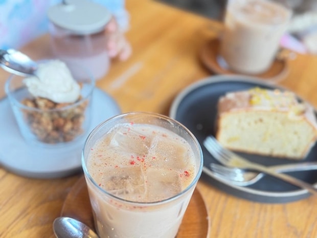 私はチャイとレモンケーキをチョイス(ケーキは友人とシェア)。娘にはキッズココアとグルテンフリーメープルグラノーラアイスを注文してみました。おいしいのにまったく罪悪感なく食べられるのがうれしかったです♡