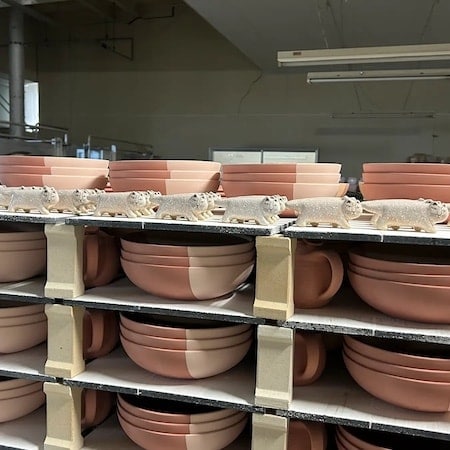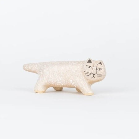 今回のリサ猫は、縮れ模様が特徴の「かいらぎ」で仕上げている。萩焼の思想と、リサ・ラーソンの形が出会い、ここでしか生まれなかった一匹だ。