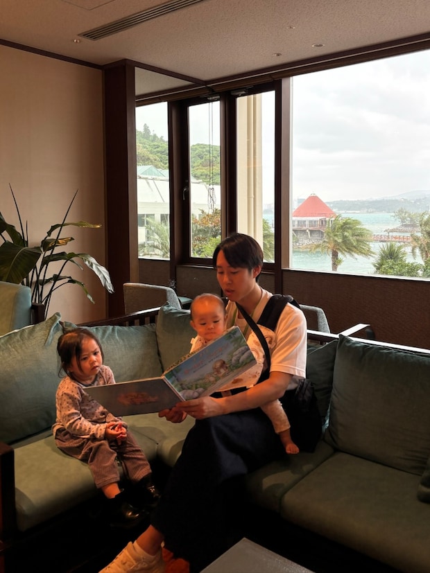 パパチーム、ママチーム、別れて入浴後、集合するのはラウンジ。無料のドリンクや日替わりのスムージーがあり、長女は今でも「温泉のあと、スムージー飲んだね!」と振り返っています笑