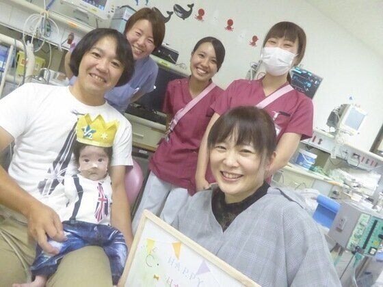 出生体重が約1900gと少し小さく、生まれたときには泣き声も弱かったこうせいくんは、その日のうちに8時間を超える手術を受けました。その後も、消化管や心臓病の手術を繰り返しながら、NICUで7カ月間、家族と医療スタッフに見守られて過ごしました。その後は小児科病棟へ転棟。1歳の誕生日を迎えるころに退院して、自宅での生活が始まりました。1歳半になるころには、お母さんから「よく笑い、大きな声で泣く元気な男の子に成長しています」と聞きました。最近でも外来で会うとポーズを取ってくれて、「先生、写真撮って!」と声をかけてくれる、明るくて笑顔がすてきな男の子です。